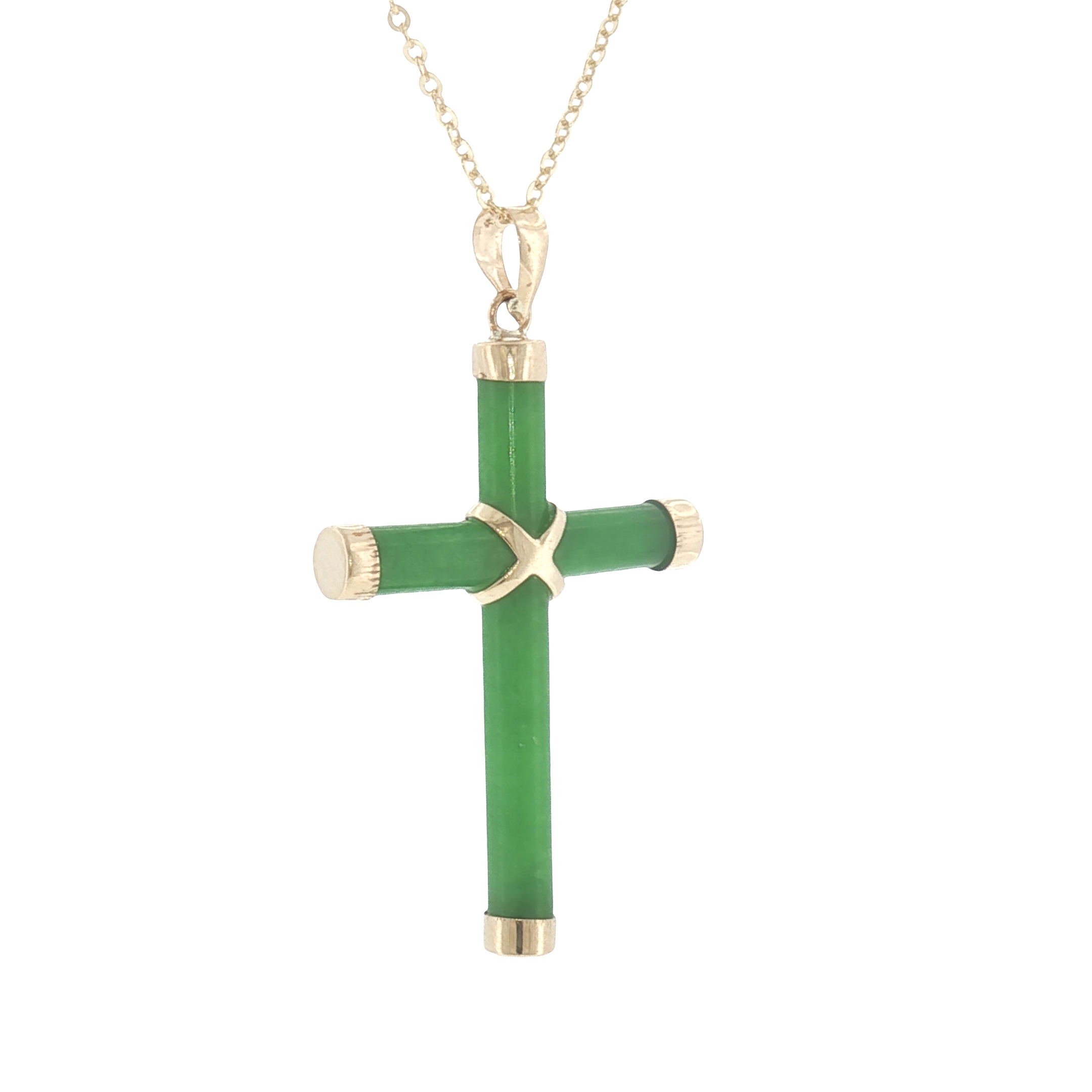 Serene Faith: 14K Yellow Gold Green Jade Cross Pendant Necklace Bryan Jewelry Prattville, AL